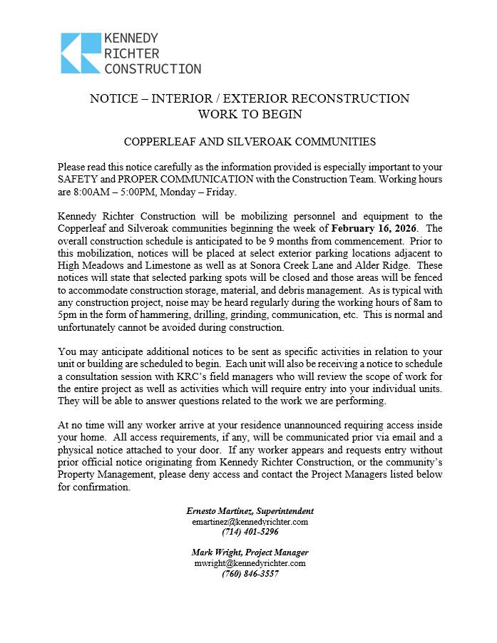 Copperleaf and Silveroak Reconstruction Project
